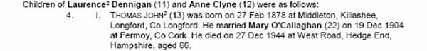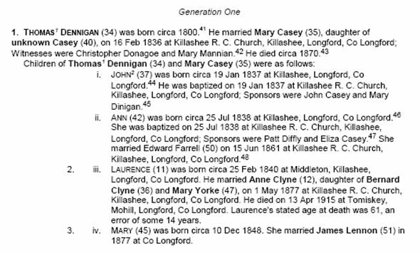 Text Box: Appendix—The Genealogical Journal of Thomas Dennigan