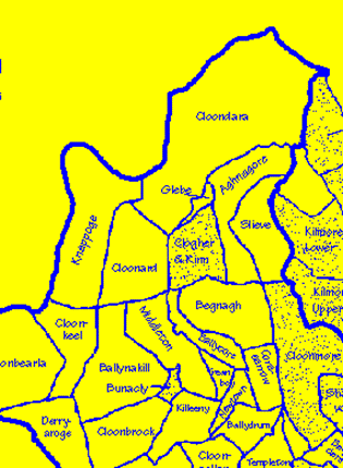 Text Box: A partial sketch map of Killashee Civil Parish, showing the location  of Middleton, Curragarrow and Slieve townlands.