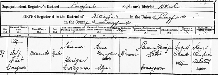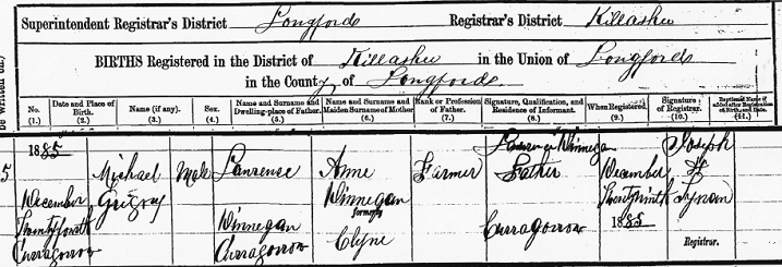 Text Box: Birth Michael Gregory Dennigan, 1885